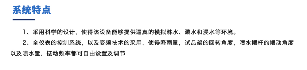 用途:可程式淋雨試驗(yàn)箱適用于電工電子產(chǎn)品(包括組件)、燈具照明產(chǎn)品、汽車摩托車零部件外殼和密封件等產(chǎn)品做外殼防護(hù)等級(jí)測(cè)試(IP 防水等級(jí)試驗(yàn)),模擬其產(chǎn)品在運(yùn)輸和使用期間可能受