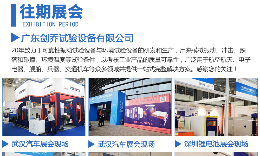 用途:廣東劍喬試驗設(shè)備有限公司,20年致力于可靠性振動試驗設(shè)備與環(huán)境試驗設(shè)備的研發(fā)和生產(chǎn),用來模擬振動、沖擊、跌落和碰撞、環(huán)境溫度等試驗條件,以考核工業(yè)產(chǎn)品的質(zhì)量可靠性,廣泛用于